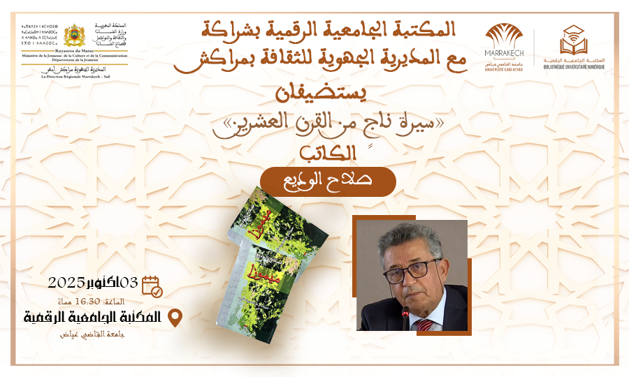 اللقاء الأدبي الذي نظمته المكتبة الجامعية الرقمية لجامعة القاضي عياض بشراكة مع المديرية الجهوية للثقافة بمراكش، والذي استضاف الكاتب صلاح الوديع لتقديم مؤلفه “سيرة ناجٍ من القرن العشرين”ـ وقد ساهم في